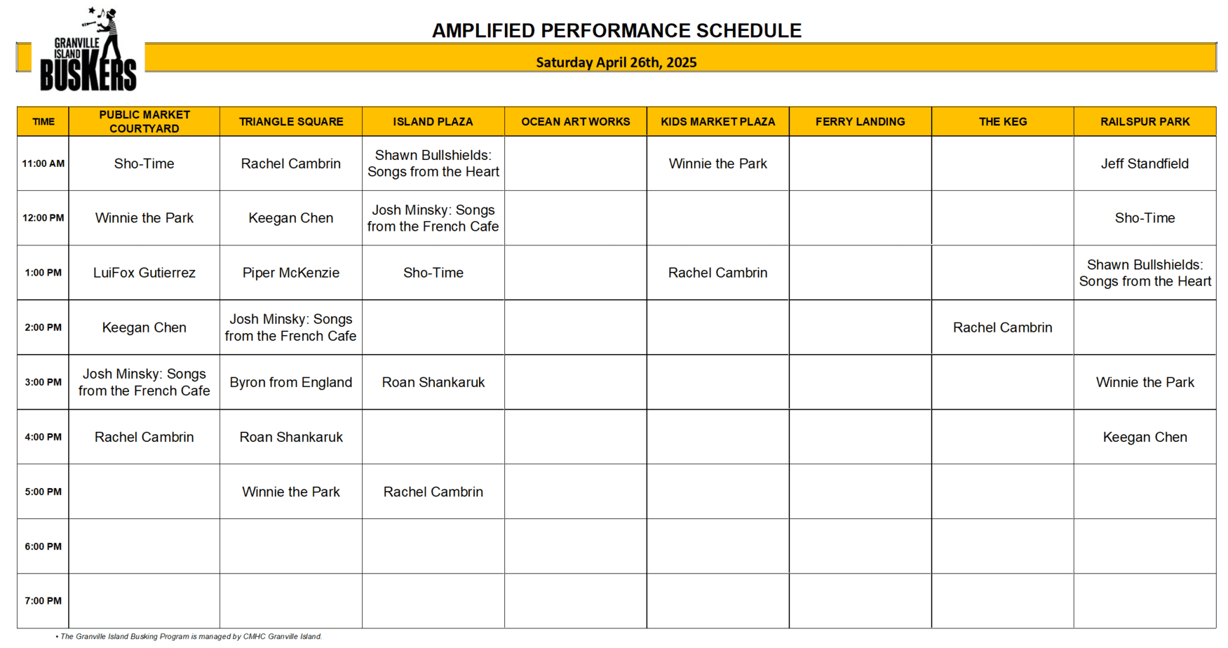 Saturday, April 26 2025: Outdoor Amplified Performance Schedule